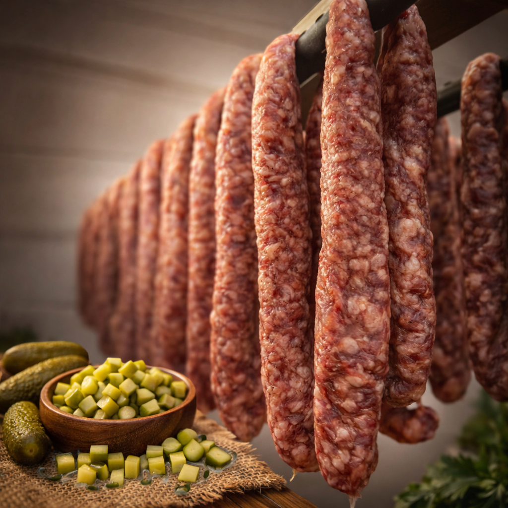 Varkensvlees, zout, augurk, peper, suiker, specerijen